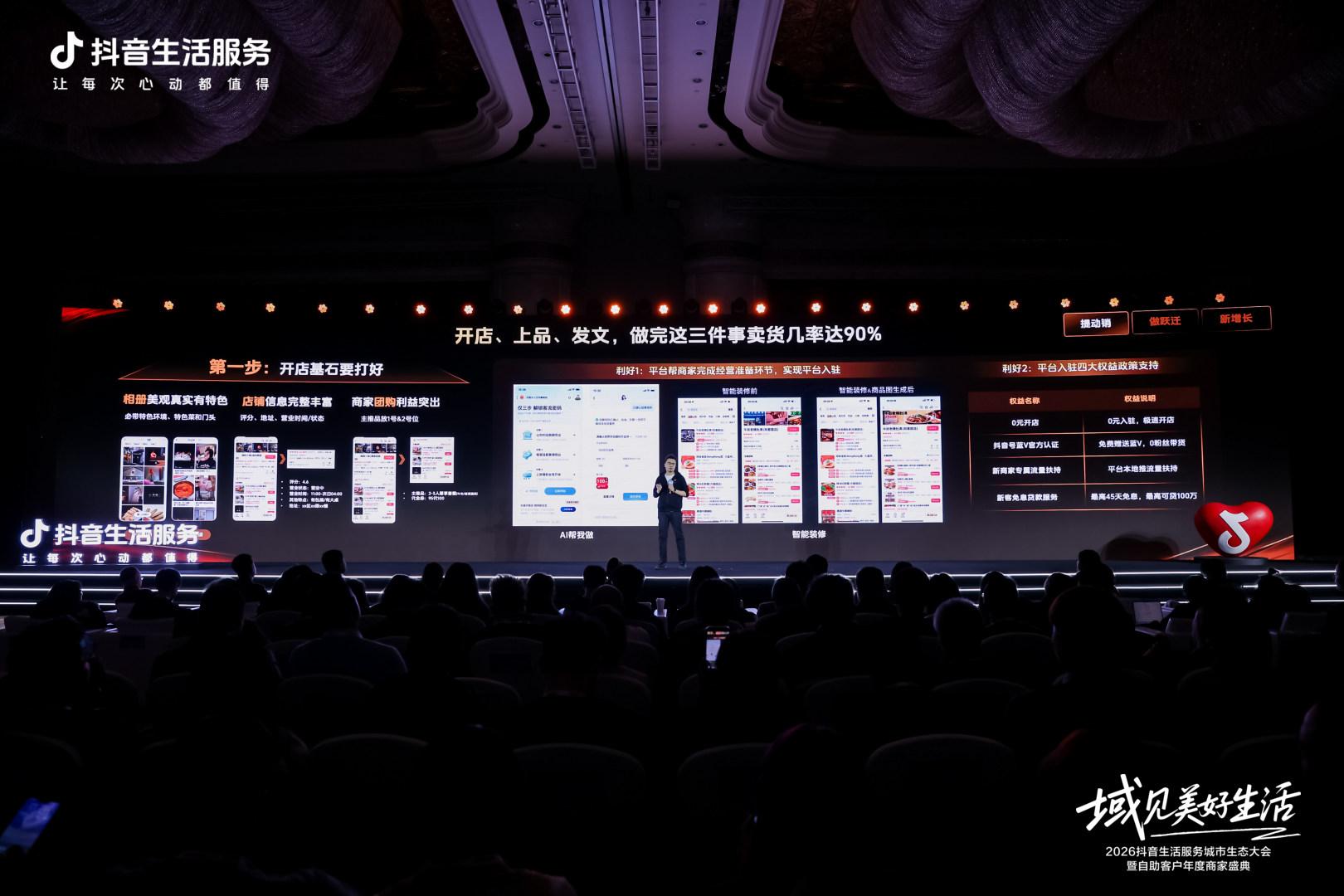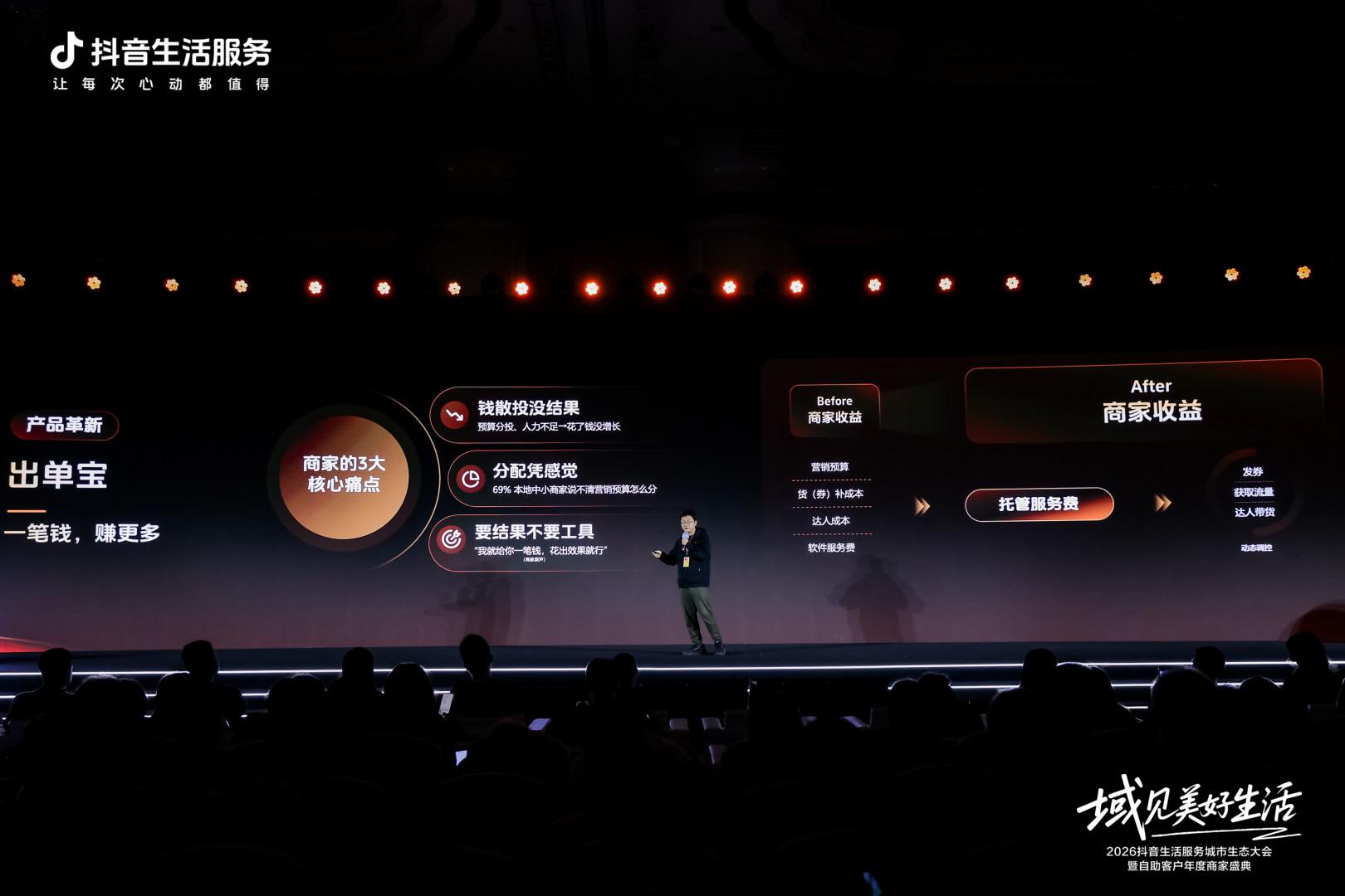 2026年,平台将通过「线上 线下」联动带增长,线上在视频、直播、搜索三方面做好全域内容矩阵持续强化供给,线下在扫码和买单加强资源投入提升交互效率;通过「营销工具 ai」做提效,推出 “出单宝” 整合营销工具,帮商家用一笔预算,实现自动拓流量、自动发券、自动找达人;并通过ai智能店长、ai创作工具,让商家 “省心、省力、省钱”地在平台上创作和经营;通过「政策资源投入」做保障,以实在的政策助力中小商家在抖音长效经营,长效收益。