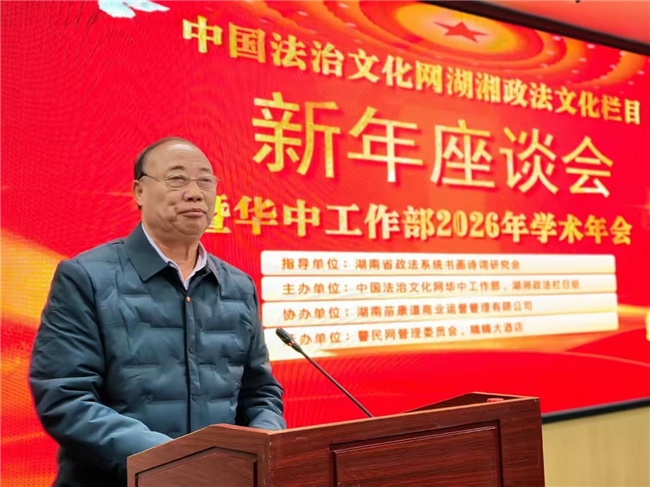 2月7日,中国法治文化网湖湘政法文化栏目新年座谈会暨华中工作部2026年学术年会在长沙嘀嘀大厦成功举办。本次会议以“深化法治文化建设,共谋2026发展新篇”为主题,汇聚政法界领导、专家学者、媒体代表及法律实务工作者近50人,共同回顾2025年奋斗历程,擘画2026年发展蓝图。会议由中国法治文化网华中工作部、湖湘政法栏目组主办,湖南省政法系统书画诗词研究会指导,警民网管委会与嘀嘀大酒店共同承办。