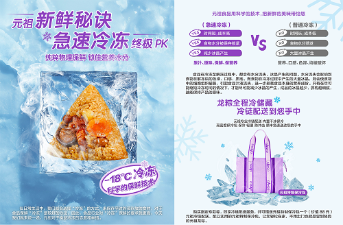 随着订单数量的大幅增加,元祖生产线上一片繁忙景象。糯米浸泡、馅料炒制、粽叶清洗、手工包裹……每一道工序均严格遵循标准化流程。今年的端午,元祖以“元祖龙粽会呼吸”为主题,采用“急速冷冻”技术,为端午龙粽保留自由呼吸的空间;全程急速冷冻锁鲜,搭配冷链配送,让消费者打开粽叶的瞬间,依旧能感受到新鲜出炉般的美味口感。