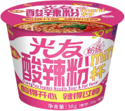 光友酸辣粉mini杯 (浓香型):光友酸辣粉的经典风味,酸辣过瘾,汤汁浓郁,粉丝爽滑劲道,满足消费者对酸辣粉独特口味的追求。包装精致,小巧便携。