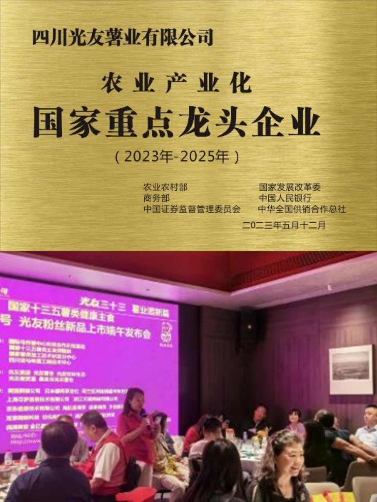 5月29日消息:5月26日,在北京召开《国家十三五薯类健康主食 33年老字号 光友粉丝新品上市端午发布》。主办单位:国家十三五薯类方便主食课题组、 国家薯类加工技术研发分中心、四川省马铃薯工程技术中心、四川光友薯业有限公司、四川光友新贸易有限公司、四川光友农林生态有限公司;支持单位:美国熊猫公司、日本都商事会社等国际经销商及北京经销商、西安经销商、哈尔滨经销商、乌鲁木齐经销商。