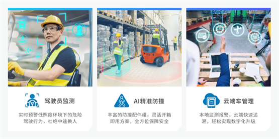 除此之外,威盛ai叉车智能防撞系统可结合威盛dms驾驶员监控技术、威盛云端车队管理技术无缝衔接使用,实时监测疲劳驾驶、分心驾驶等行为,并将数据上传至云端,便于实时追踪车辆及提升管理效率。