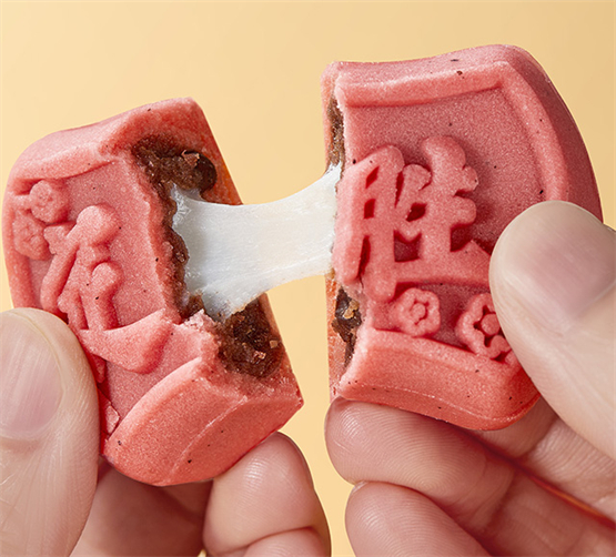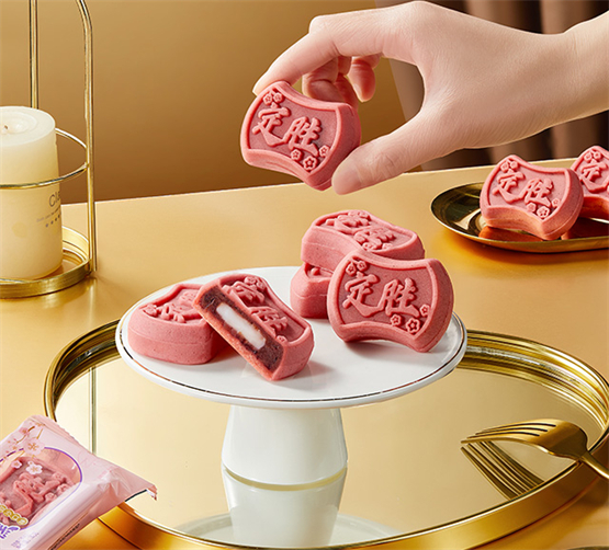 元祖对品质的苛求,从定胜糕的方寸之间可见一斑。内馅精选优质红小豆,经古法熬煮,保留了细软颗粒的天然口感,豆香醇厚绵长。更令人惊喜的是,豆沙之中匠心包裹着软糯弹韧的麻薯皮,轻咬一口,q弹的拉丝体验,带来口感层次的奇妙碰撞。外皮则创新融入天然火龙果粉,不仅赋予糕点温润的色泽,其表面隐约可见的细小籽粒更添自然意趣,入口松软,清香与微甜交织,毫无甜腻之感。这份对原料的严选与工艺的雕琢,正是元祖四十四年如一日“精致礼品名家”风范的缩影。