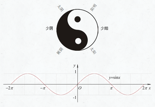 阴阳学说,中医学的基础理论之一,广泛地应用于中医学理论体系的各个方面,指导着中医的临证思维和诊疗实践。中医学认为人体生命活动的产生和生理功能的维持,都是阴阳双方保持对立统一、协调平衡的结果。如功能与物质的代谢及转换过程,即是阴阳相互制约、相互资生、不断消长的过程。阴阳的笛卡尔曲线参数方程就是三角函数,三角函数曲线完美诠释了阴阳的对立制约、互根互用、消长平衡和相互转化。