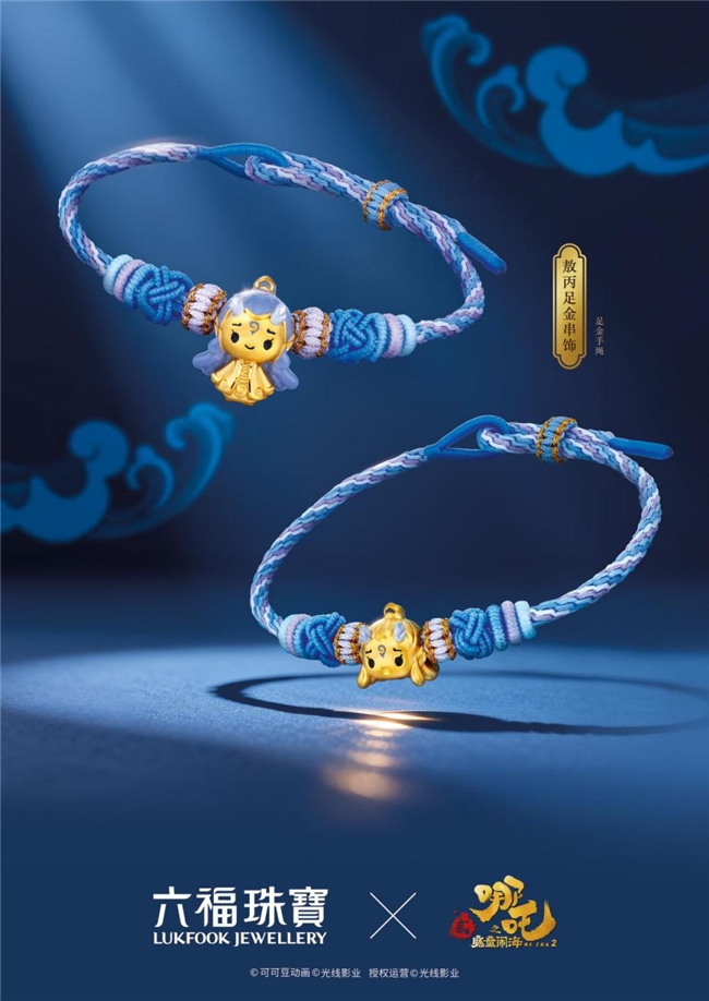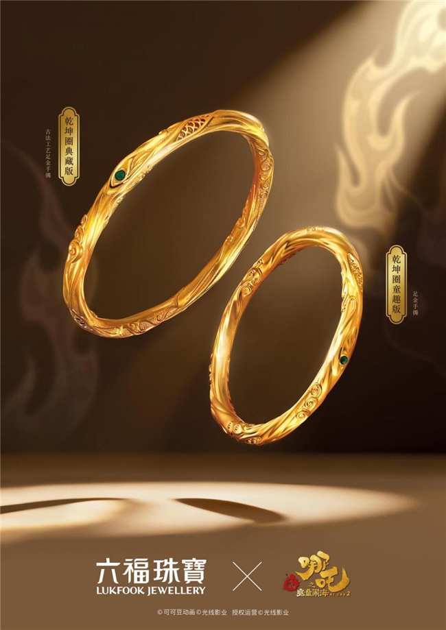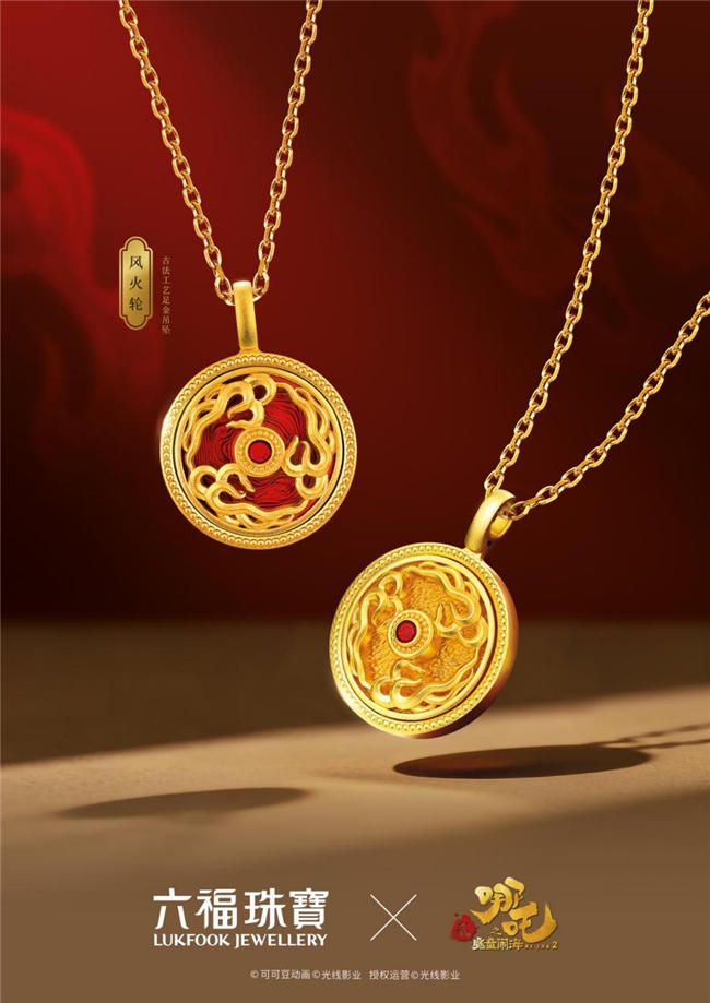 基于此,六福珠宝此次二度牵手“哪吒ip”,选取了电影《哪吒之魔童闹海》中具有代表性的哪吒、敖丙、乾坤圈、风火轮、混元珠等经典角色和元素,并运用传统古法制金工艺与硬足金鎏彩技术,将这些元素打造成多款璀璨华美、寓意丰富的足金首饰,也是对饰品的个性承载功能的深刻洞察。